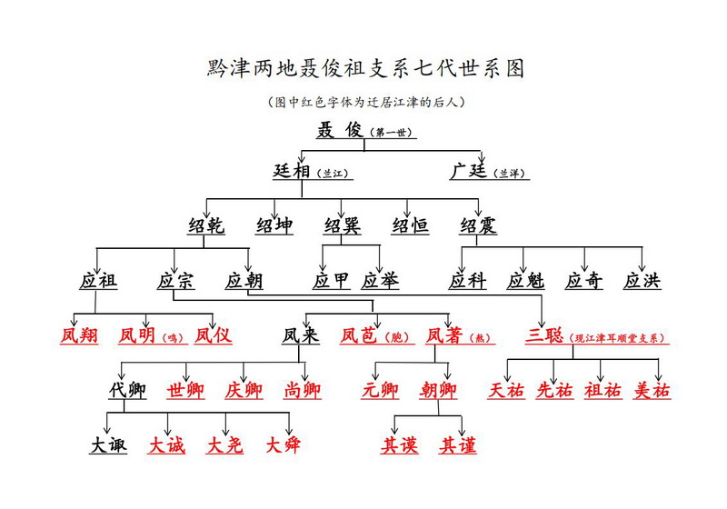 在此我再次重声,凡居住在江津属于聂俊祖支系的后人,只要你们能追踪到表中标为红色字体的祖先,我都义务的帮助你们完善家谱。